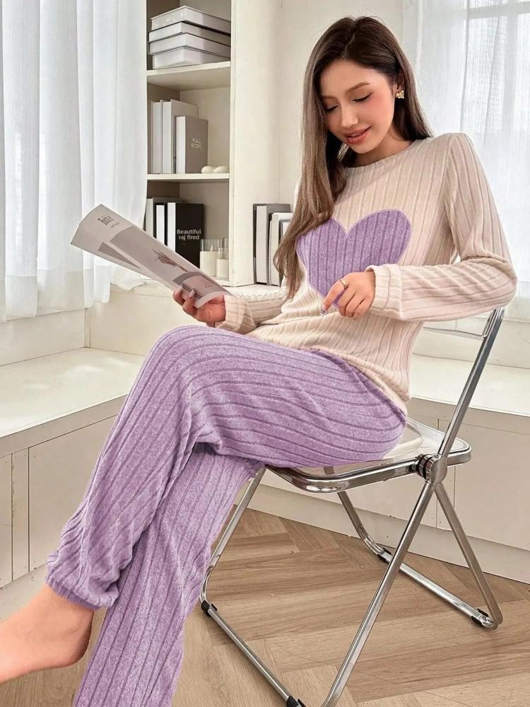مجموعة ملابس نوم ناعمة للنساء سراويل طويلة الأكمام